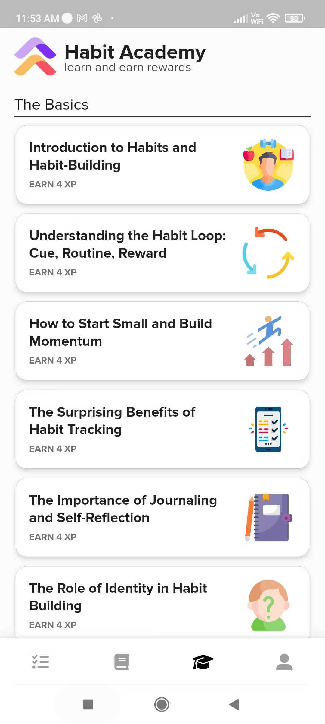 - The app offers lessons on habit formation, drawing from principles discussed in James Clear’s book.