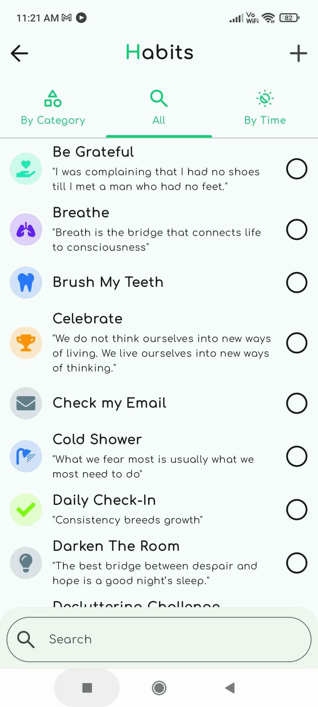 - You can add multiple habits to each Ritual from a library categorized by time and type (morning, afternoon, evening, keystone habits, health, productivity, etc.).