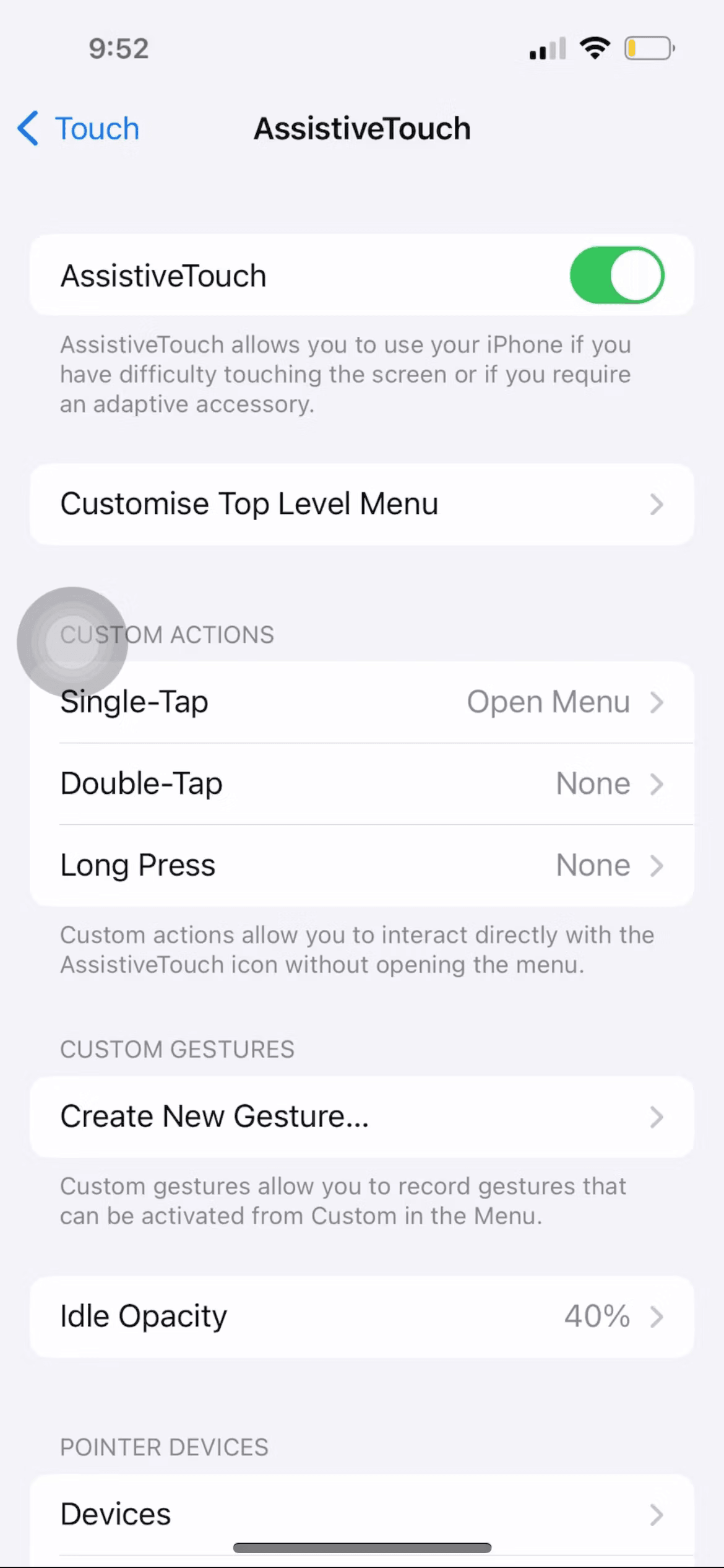 - Toggle on AssistiveTouch.
